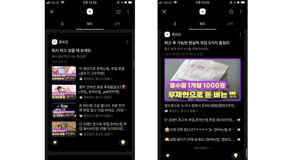 지금까지 흙회장 유튜브 채널에 올린 부수입 정보를,